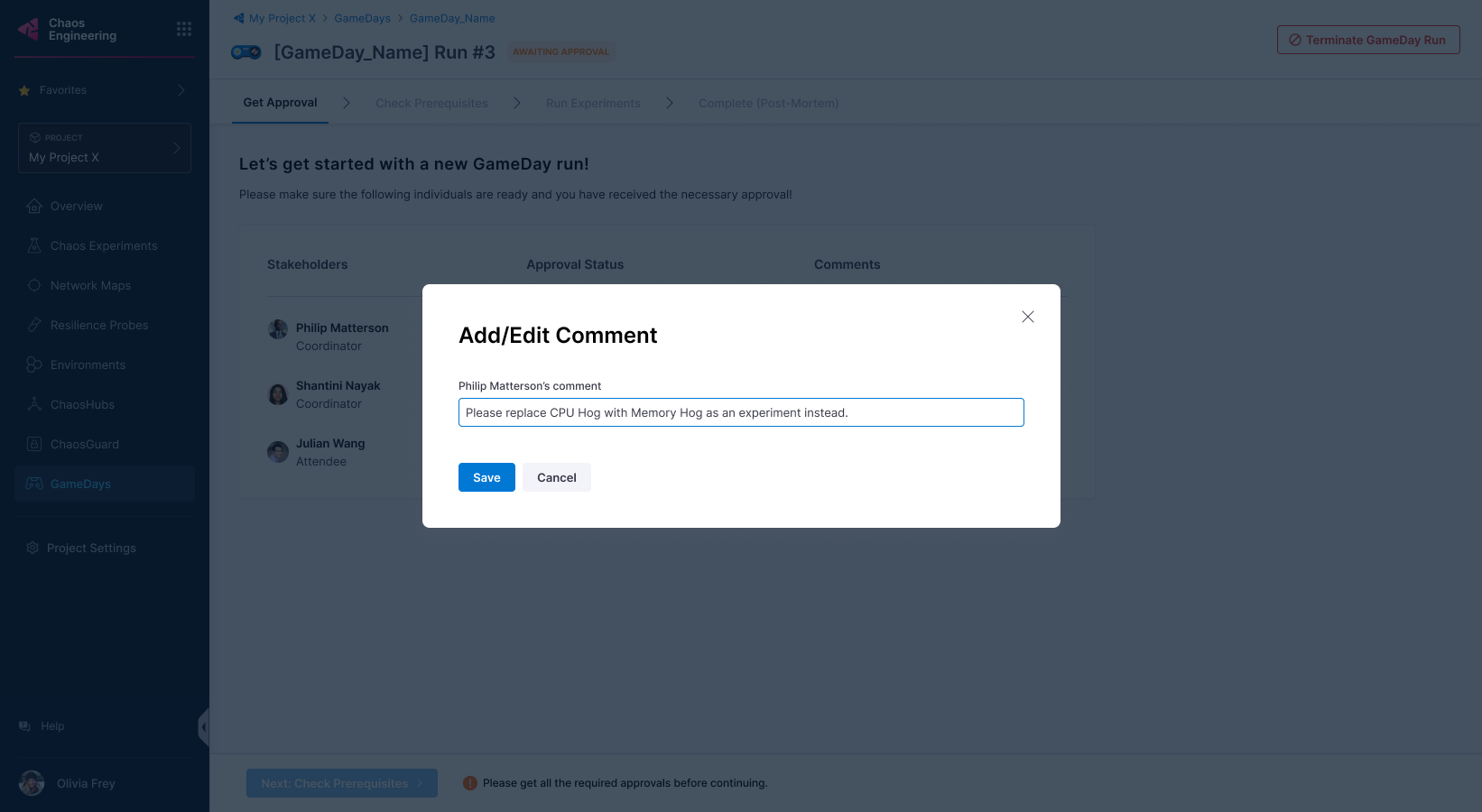 5. Once the stakeholders approve the GameDay run, you can proceed.
