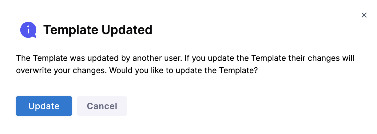 A Template Updated message opens.